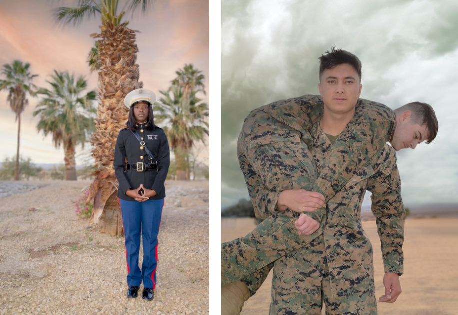 Boots and Sand: The Marines of 29 Palms began serendipitously in 2024. On a family trip to Joshua Tree, the artist Dennis Darmek decided to make an unplanned visit to the Marine Corps Combat Center, 29 Palms, California, resulting in this photo project. His only other visit to 29 Palms was in 1969 when, as an 18-year-old Marine, he received advanced weapons training before shipping out to Vietnam. Darmek says while memories can be suspect after 50 years, it’s impossible to forget the intense desert heat and rugged mountains of the Mojave Desert.