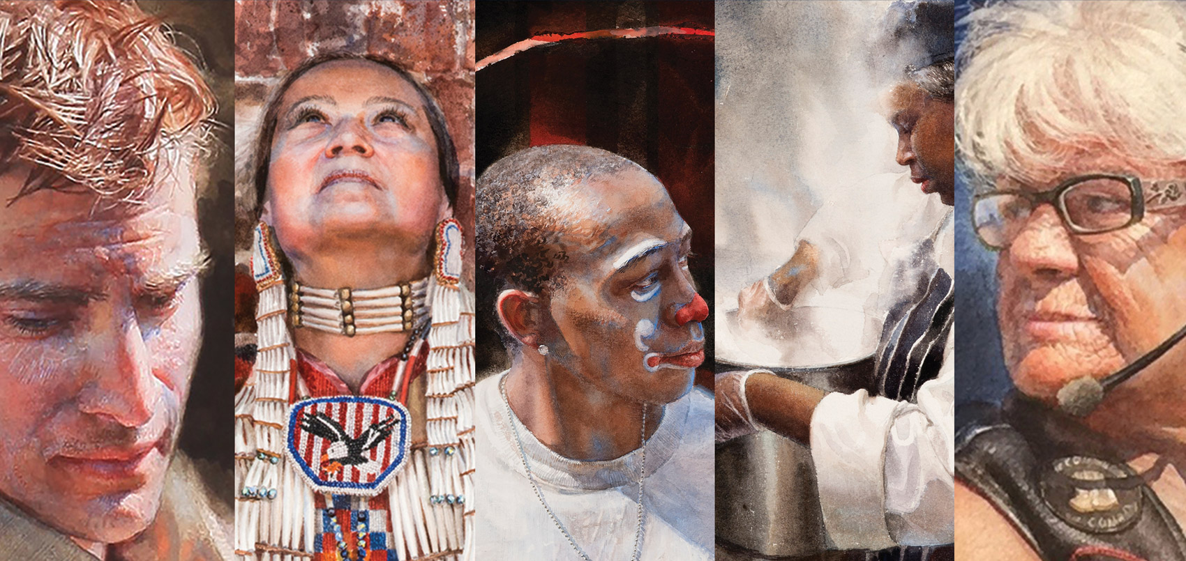 Renowned watercolor artist Mary Whyte has captured scenes of working America and honored the nation’s working class throughout her career, and in this remarkable series, she has depicted military veterans of all ages and in all walks of life. For this show, Whyte traveled the country, interviewing each individual featured in this exhibition over the course of seven years. Through her work, we see the individuals who have served our country in the military, in the ways that they continue to serve the country in industry—from agriculture to education to public service. The result is fifty large-scale watercolor portraits of everyday American veterans, including a Missouri dairy farmer, a Rhode Island lobsterman, and a Pennsylvania science teacher. Altogether, WE THE PEOPLE presents a timeless portrait survey of the United States through labor and human achievement.